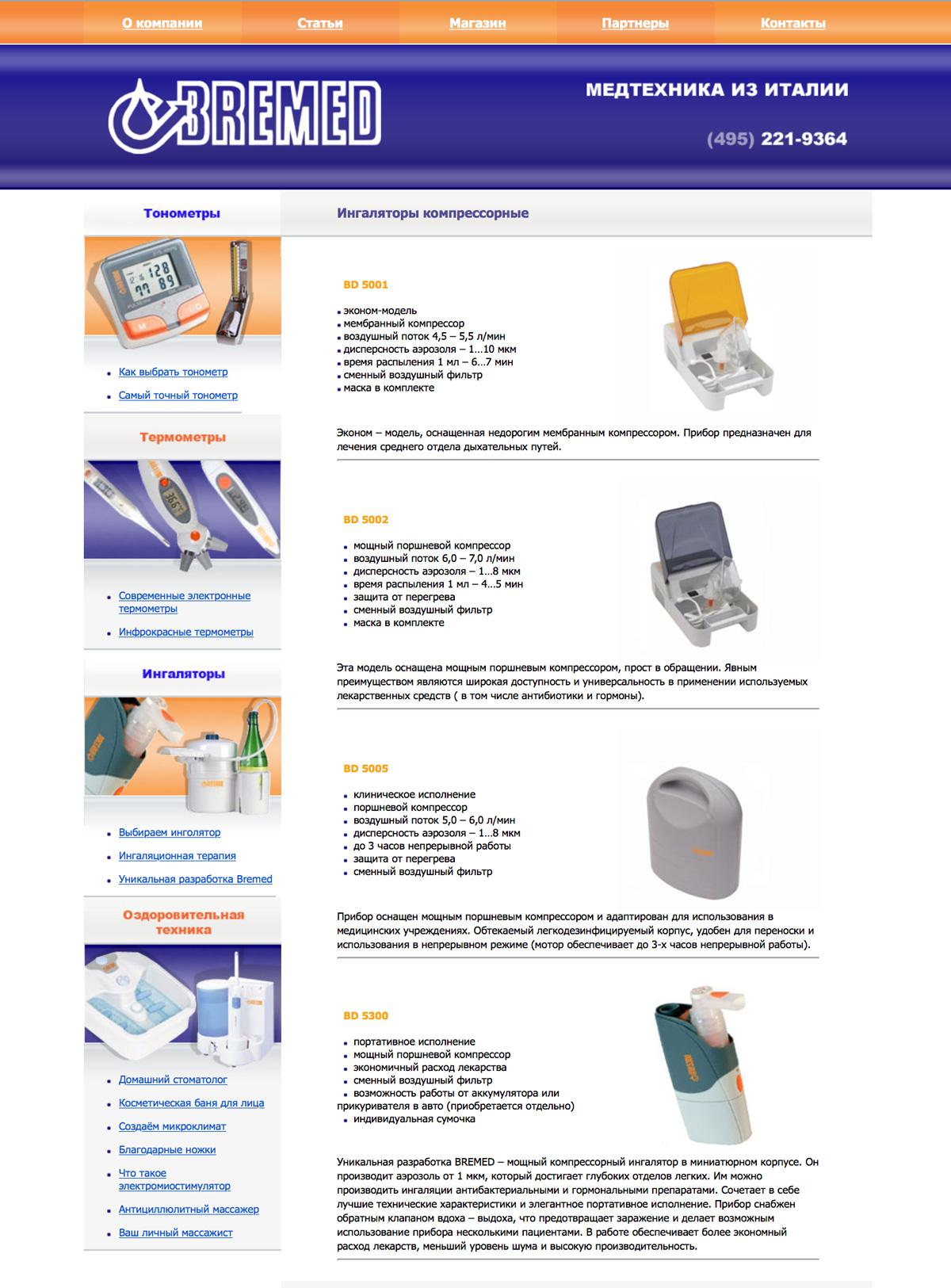 Разработка интернет-ресурса ТМ Bremed в 2006 году.