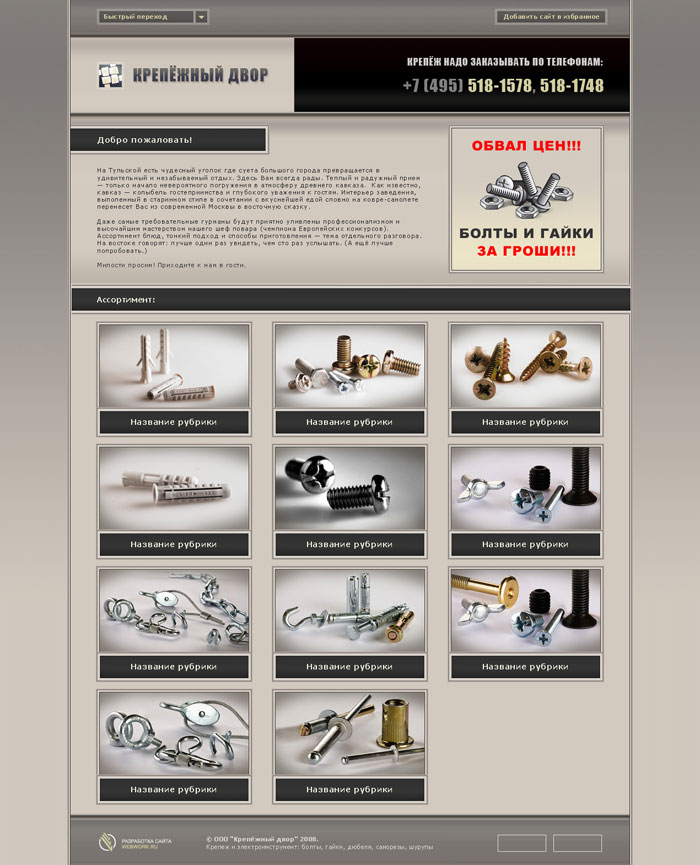 Разработка сайта компании занимающейся оптовой продажей метизов и крепежа.