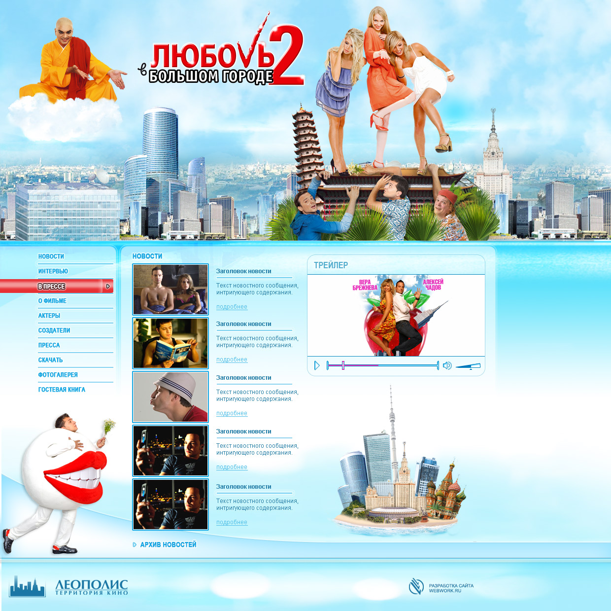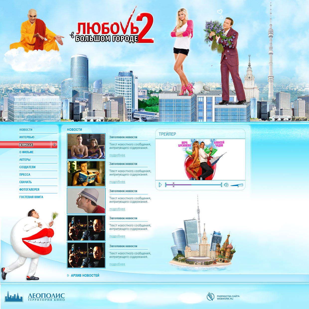 Разработка сайта первого и второго фильмов «Любовь в большом городе» для кино-компании Леополис