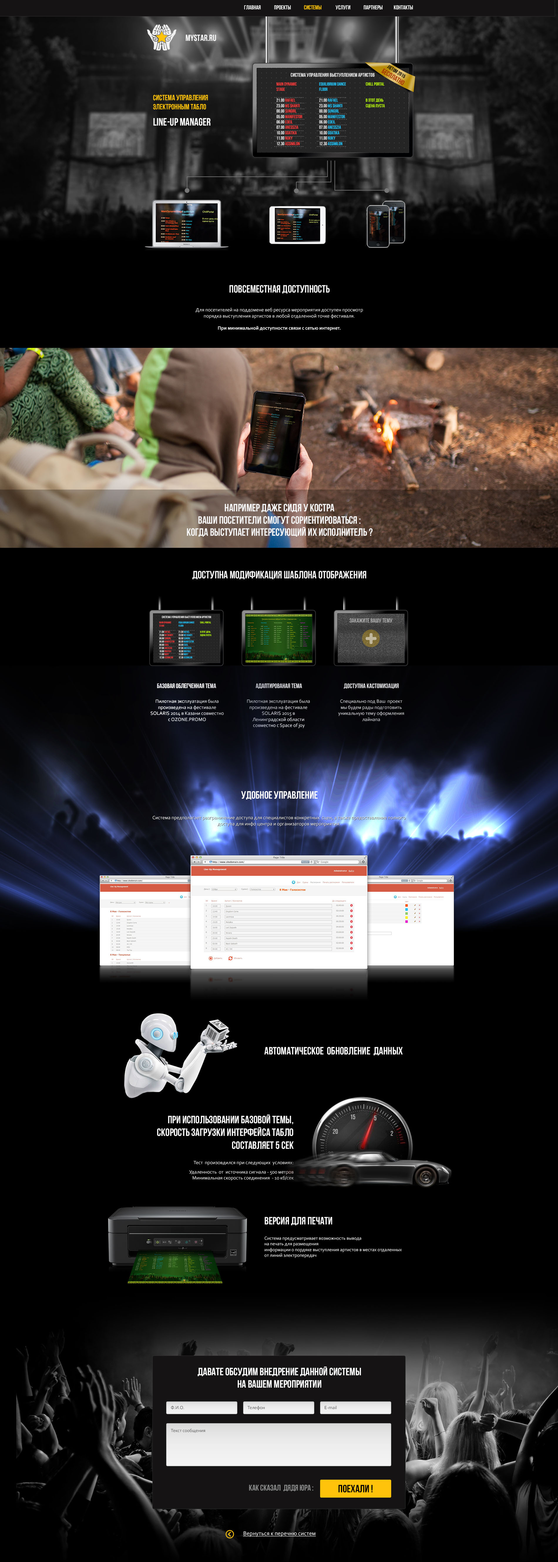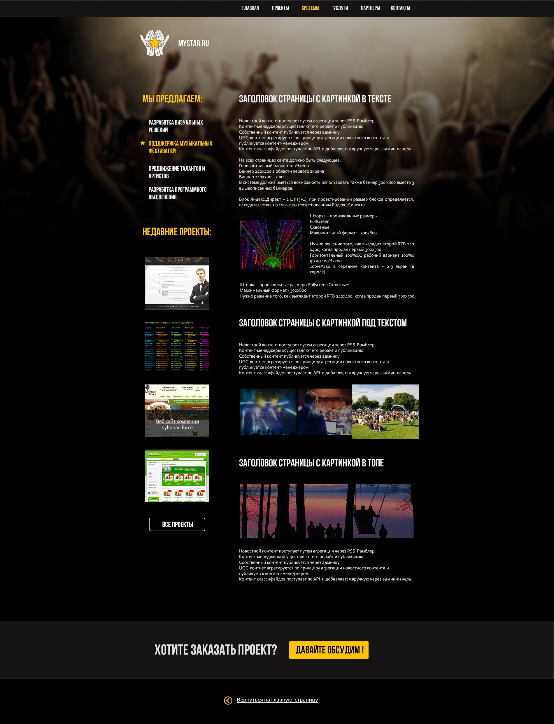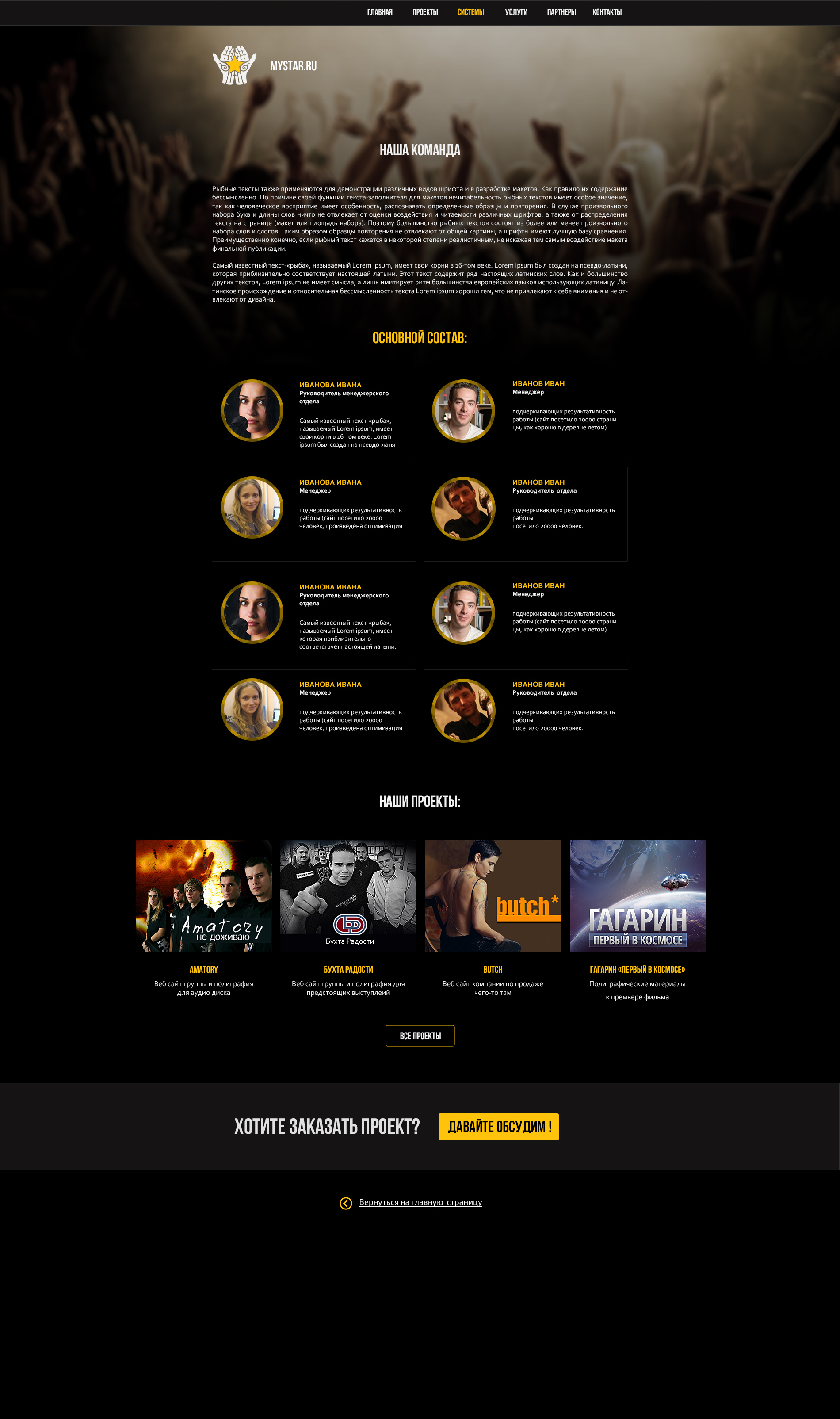 Направления деятельности команды: создание сайтов, продвижение в сети Интернет молодых артистов, информационные системы для шоу и концертов, продвижение медиа-продуктов, сопровождение и разработка информационных материалов для проведения презентаций и форумов, разработка оригинального дизайна.