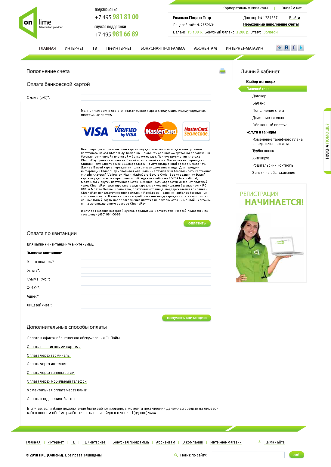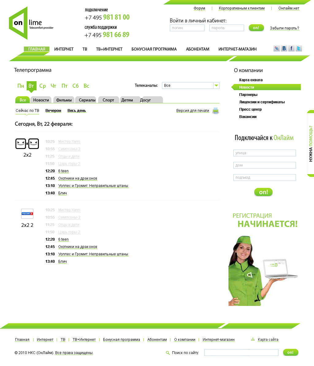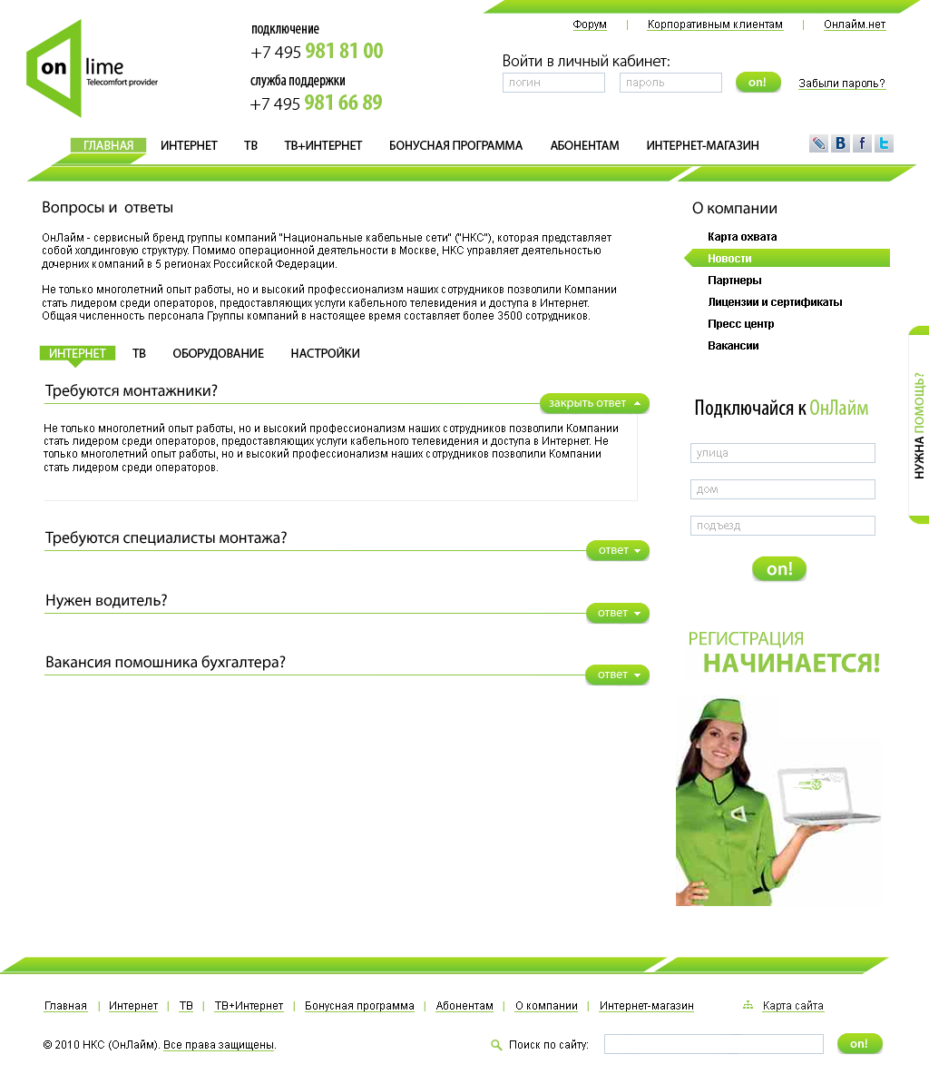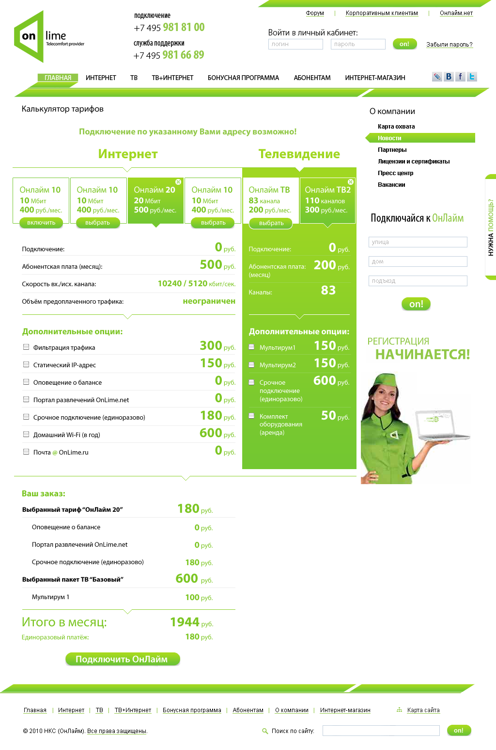- Позиционирование сайта onlime.ru как основного internet-ресурса и инструмента продаж компании, обеспечивающего простой и легкий доступ пользователей к услугам компании