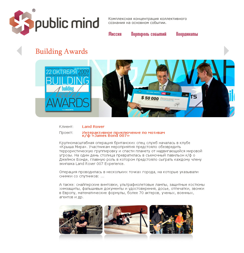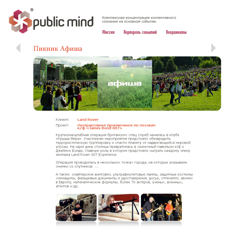 Разработка сайта event-агентства с кейсами по культурно-массовым мероприятиям.