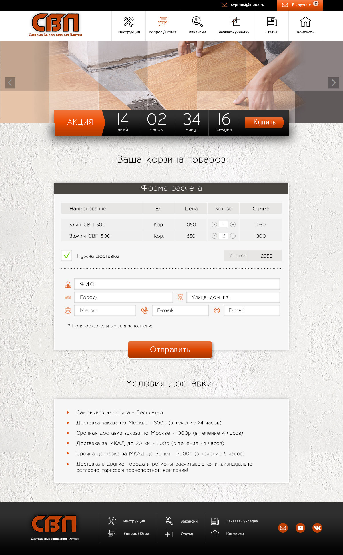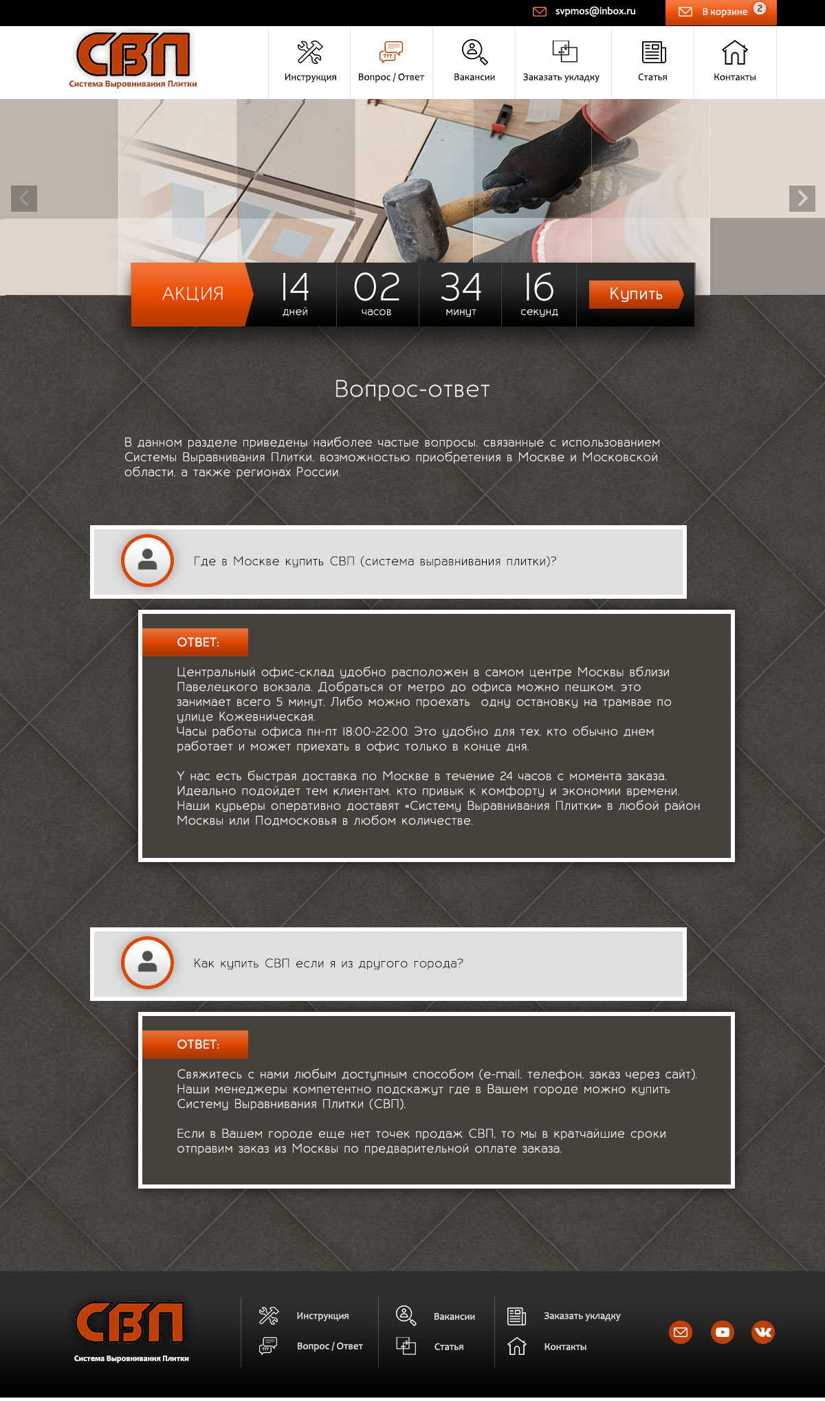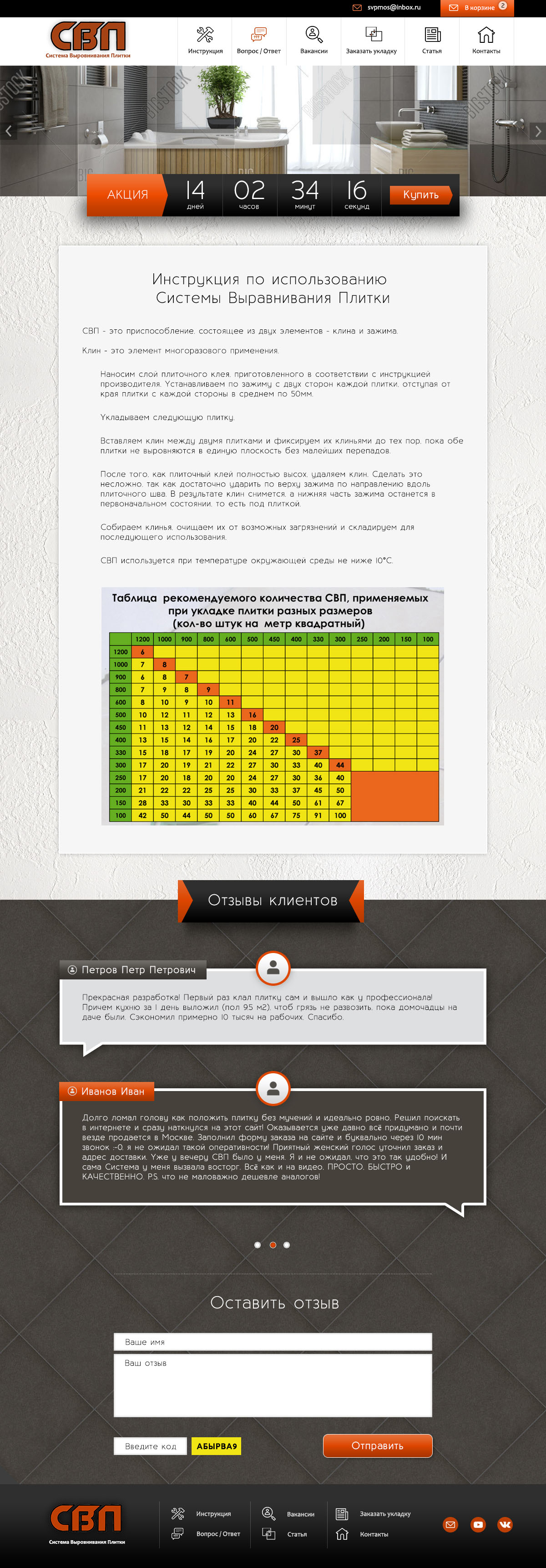 Сайт по продаже систем для выравнивания плитки при первоначальной укладке.