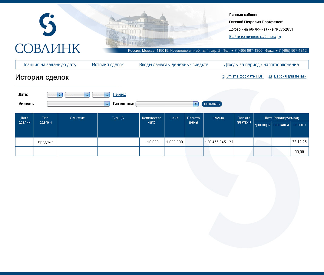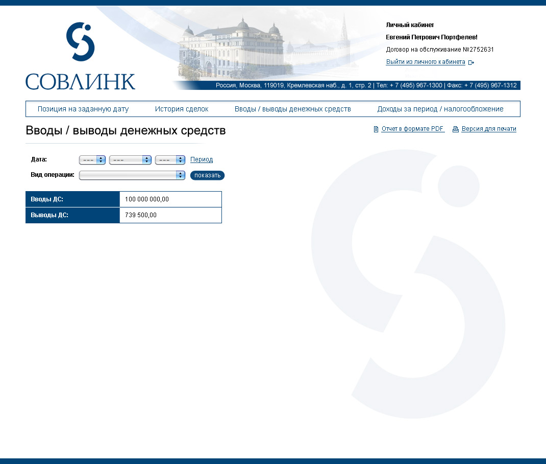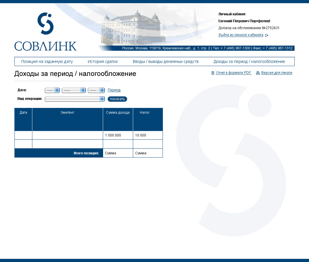 Разработка макетов оформления личного кабинета инвестиционной компании Совлинк
