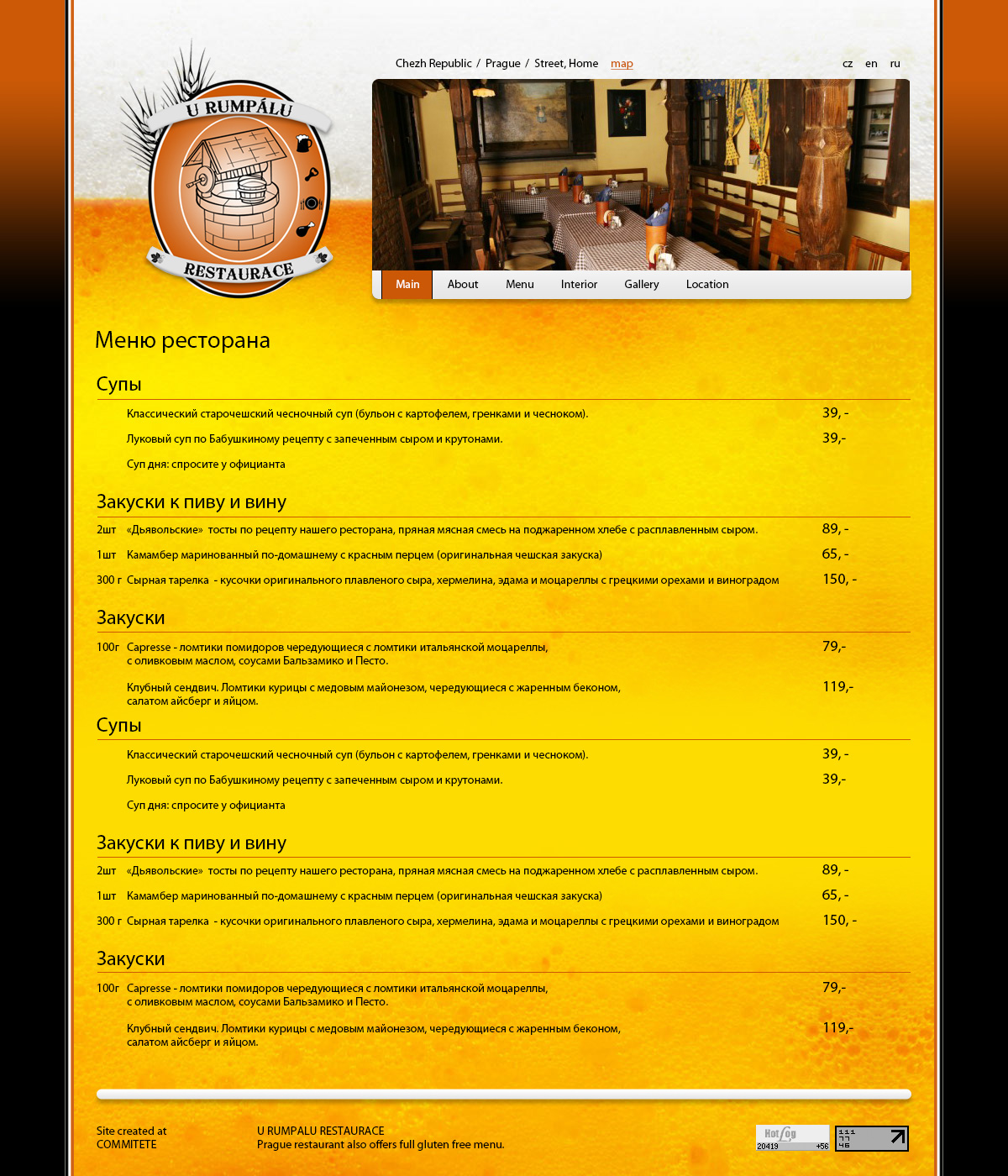 Разработка сайта пивного ресторана в Праге. Сайт был разработан на нескольких языках, в том числе и на русском.07