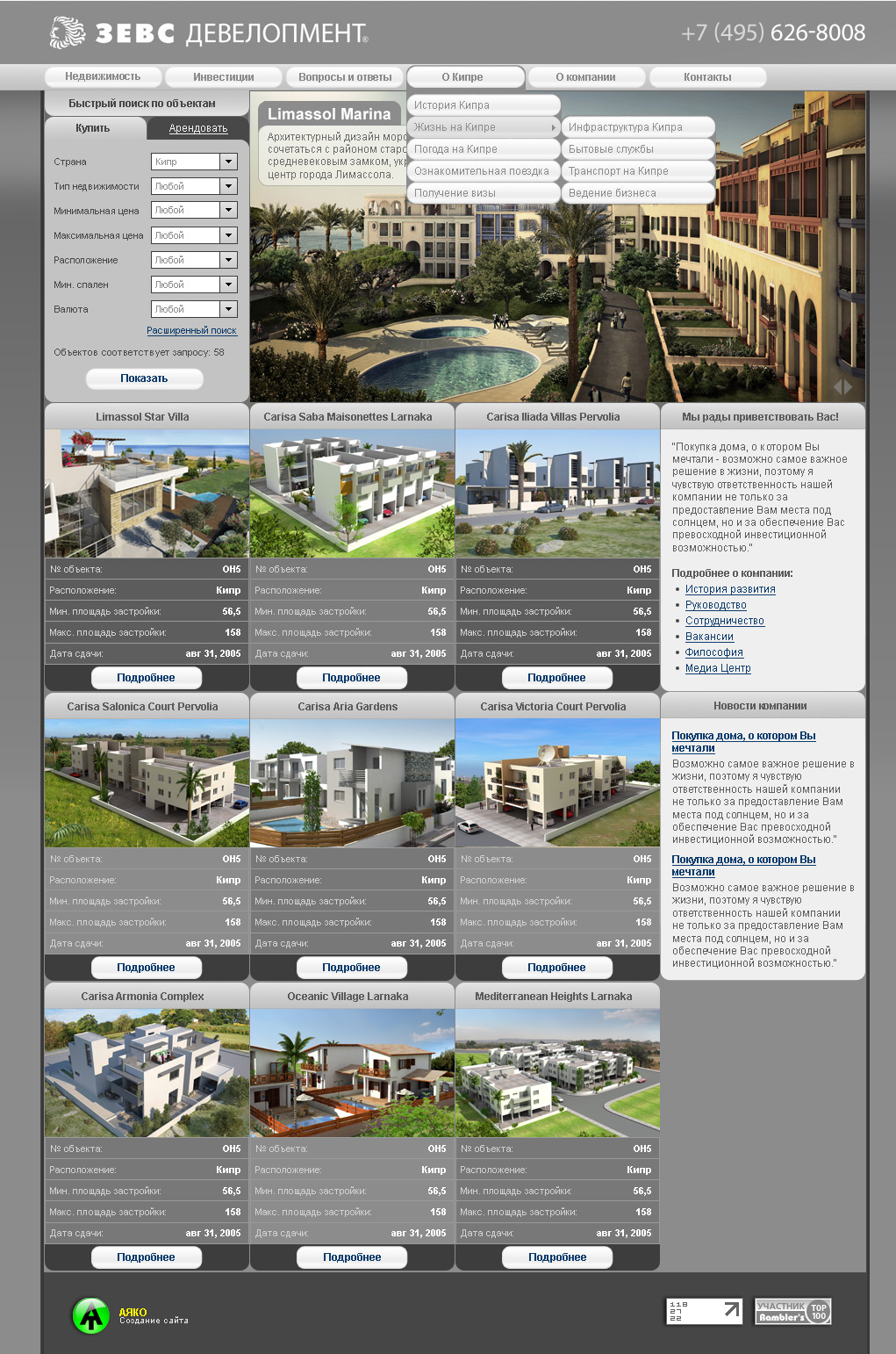 Разработка дизайн-проекта портала с каталогом объектов зарубежной недвижимости